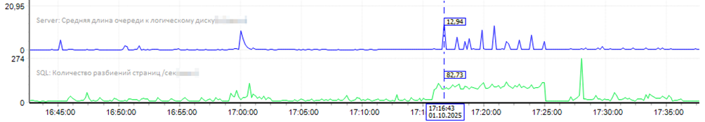Если корреляция есть, как на рисунке ниже, то значит идет частое разбиение страниц с повышенной нагрузкой на диск. Надо попробовать снизить fill factor и оценить эффект.